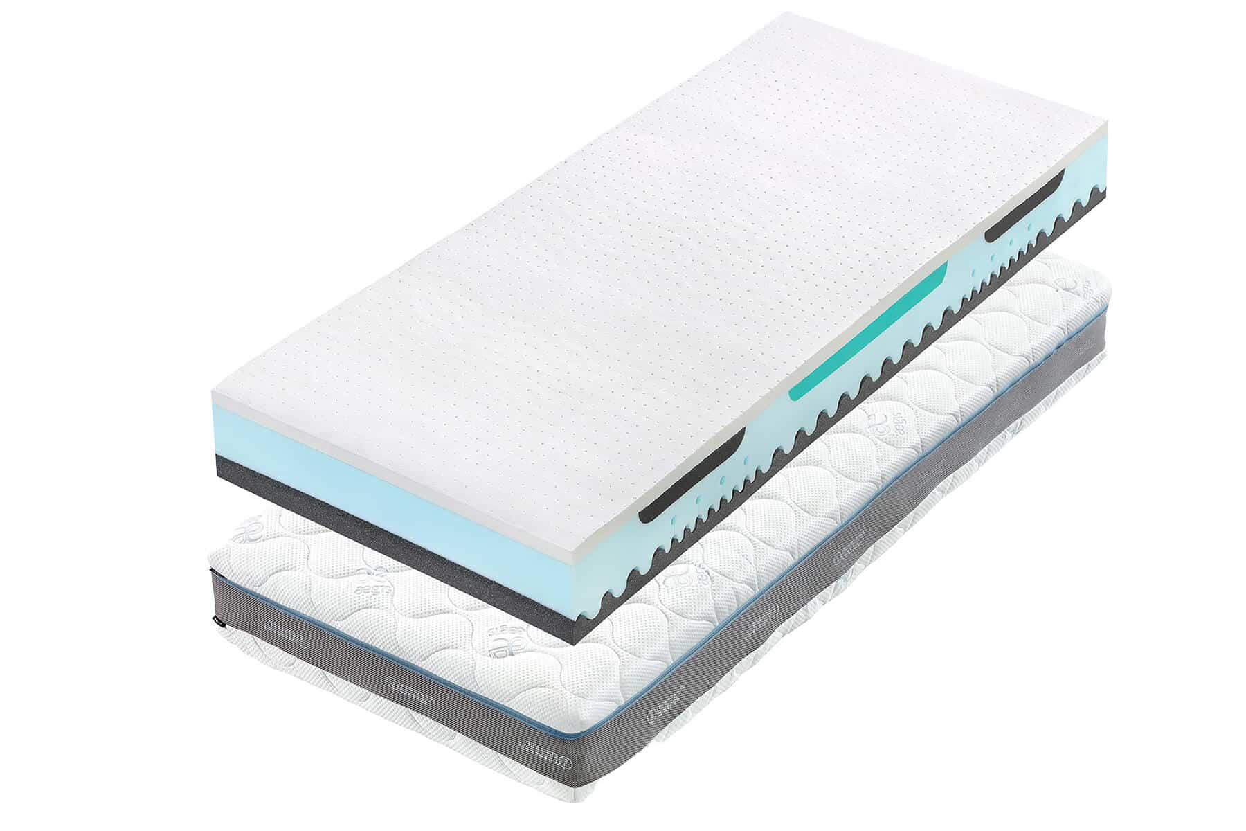 Super vzdušný matrac zo studenej peny s dvoma funkčnými stranami – pevnejšou latexovou stranou a mäkšou stranou z pamäťovej peny. Dômyselný systém ortopedických zón podopiera telo a uvoľňuje unavené svaly v každej polohe počas celej noci. Prémiový antibakteriálny a protiroztočový prateľný poťah s prírodnými vláknami. Vyrobené v Krkonošiach.