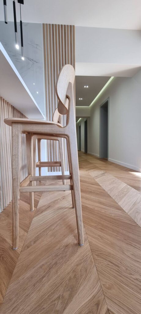 Každá stolička je vyrobená s láskou a precíznosťou a je jedinečným kúskom z najkvalitnejšieho výberového dubového masívu. Okrem toho jej moderný dizajn a olejovaná povrchová úprava olejom Borma Wachs dodáva elegantnú patinu a zvýrazňuje prirodzenú krásu dubového dreva.