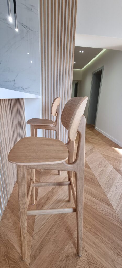 Predstavujeme vám našu novú perlu medzi barovými stoličkami – vysokú stoličku Verde z masívneho dubového dreva. Toto kreslo, výnimočné vo svojej triede, nie je len kusom nábytku, ale symbolom elegancie, pohodlia a neochvejnej kvality. Každý kus je starostlivo vyrobený z najkvalitnejšieho výberového dubového masívu, čo zaručuje nielen výnimočnú pevnosť a stabilitu, ale aj dlhú životnosť a krásu, ktorá vydrží roky. Operadlo a sedák je vyrobený zo skladanej dubovej dyhy.