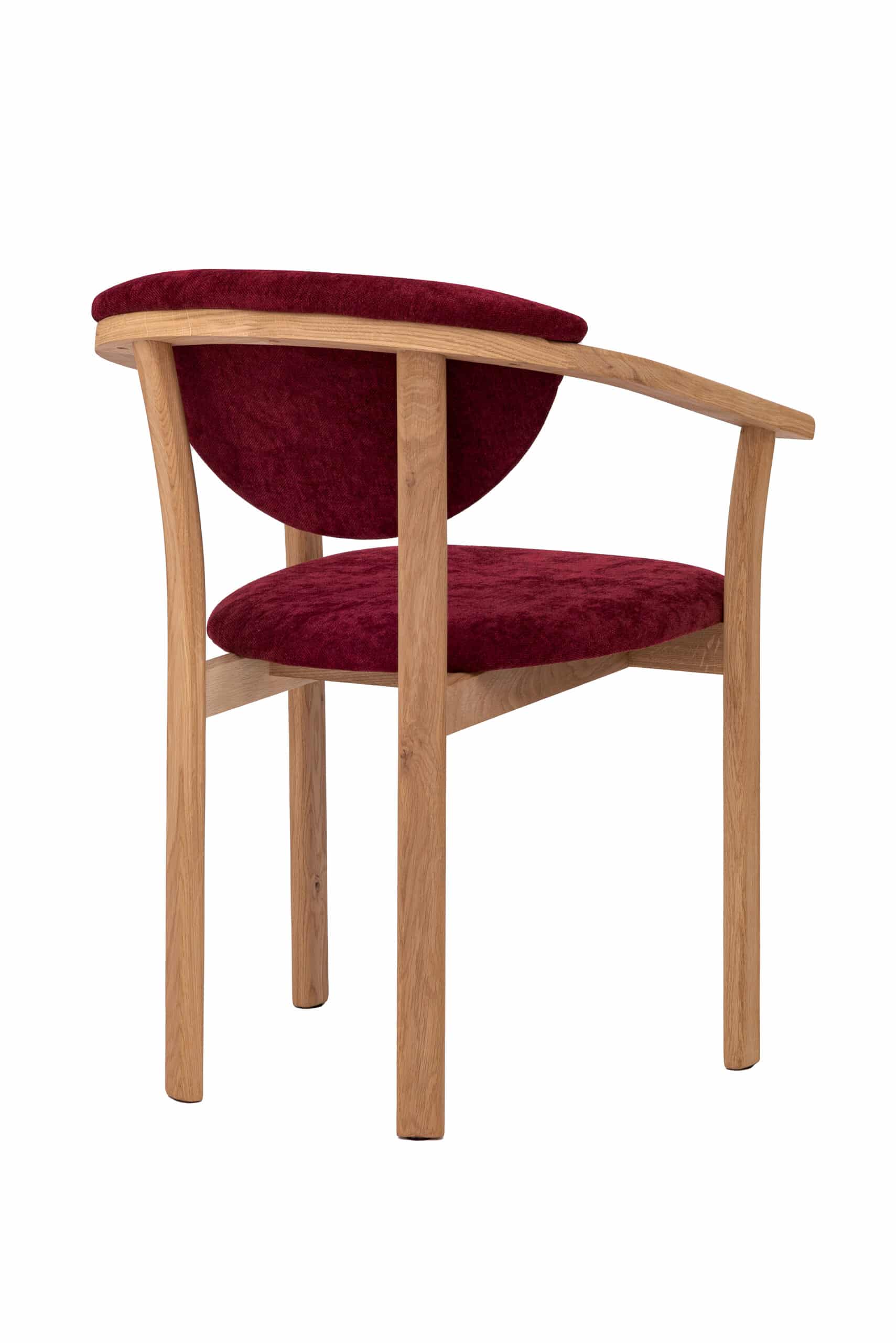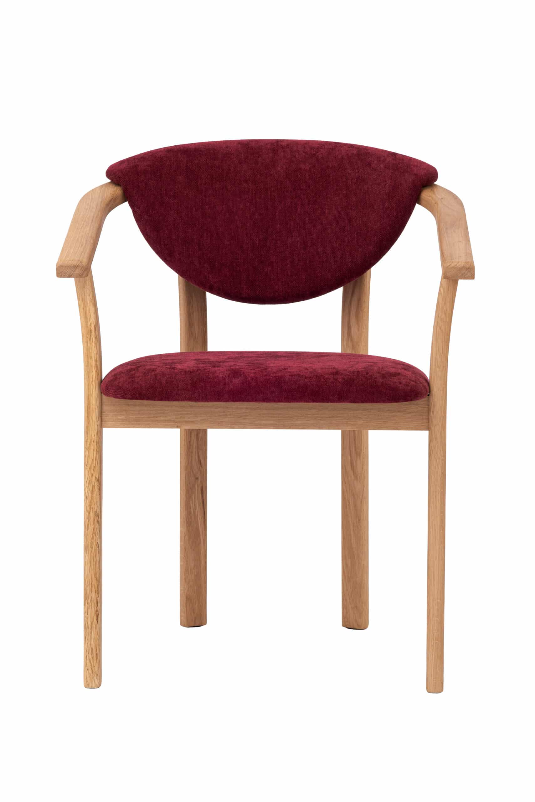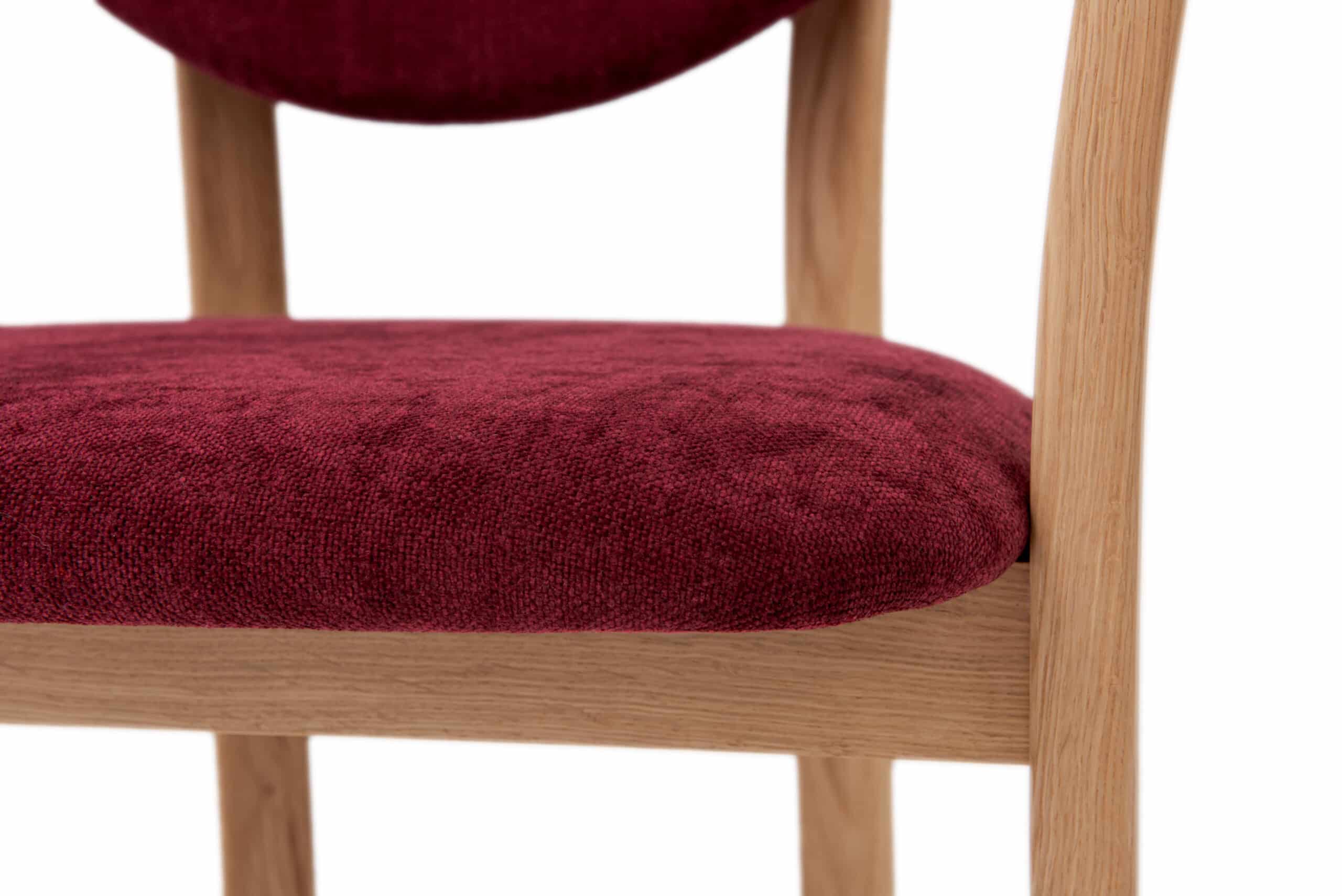 Štýlová drevená stolička Alexis z masívneho dubu s červeným čalúnením prináša komfort, kvalitu a výrazný dizajnový prvok do každého interiéru. Ergonomický tvar a praktické opierky zaisťujú maximálny komfort pri každodennom sedení. Alexis sa ľahko stane štýlovým doplnkom jedálne, pracovne aj obývacieho priestoru.