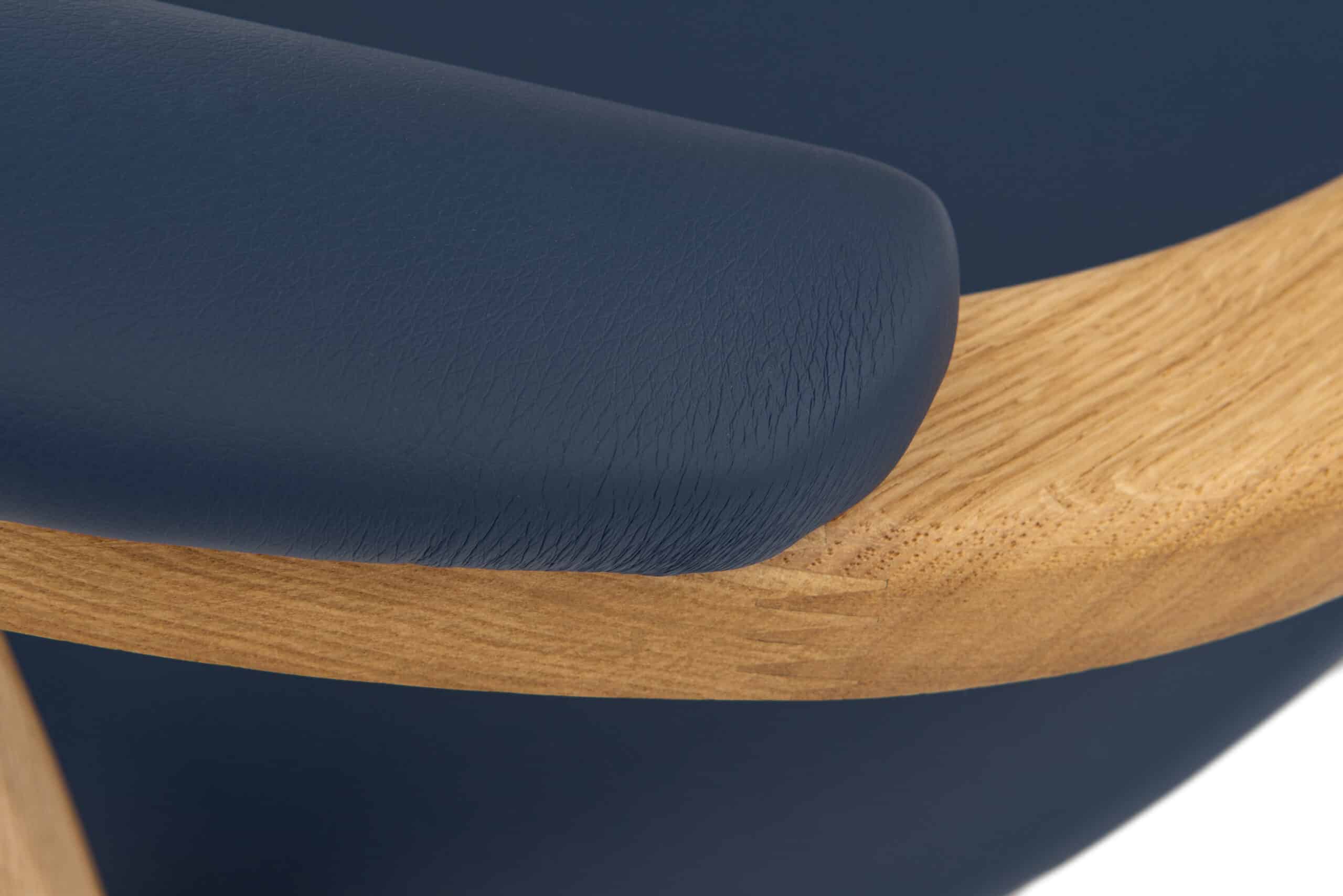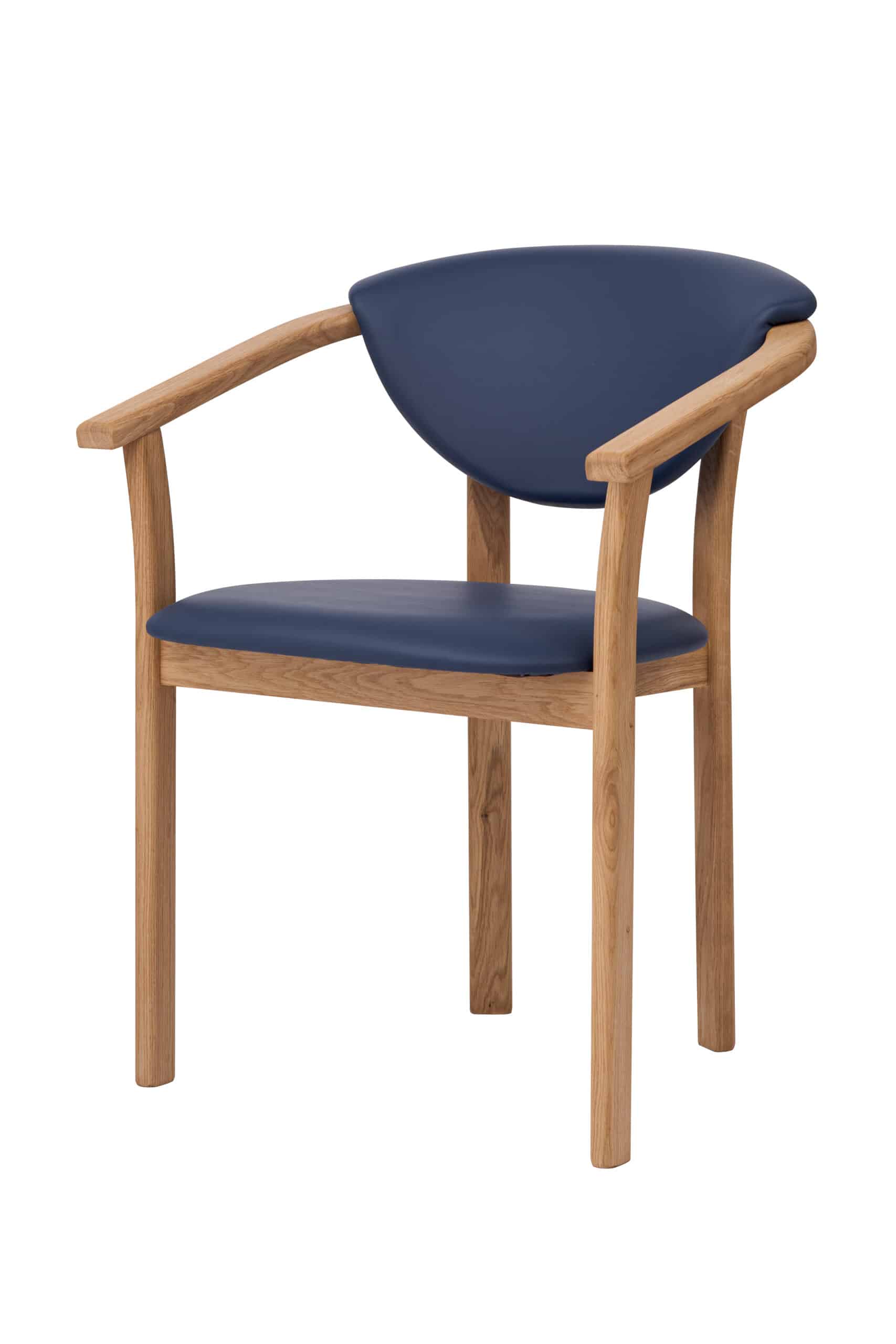 Stolička Alexis vyniká nadčasovým dizajnom, ktorý prepája prírodné dubové drevo s výrazným modrým čalúnením z koženky. Čisté línie, jemne tvarované opierky a ergonomicky riešené operadlo vytvárajú harmonický celok, ktorý pôsobí elegantne a zároveň moderne. Modrá koženka dodáva stoličke osobitý charakter a stáva sa štýlovým prvkom každého interiéru.