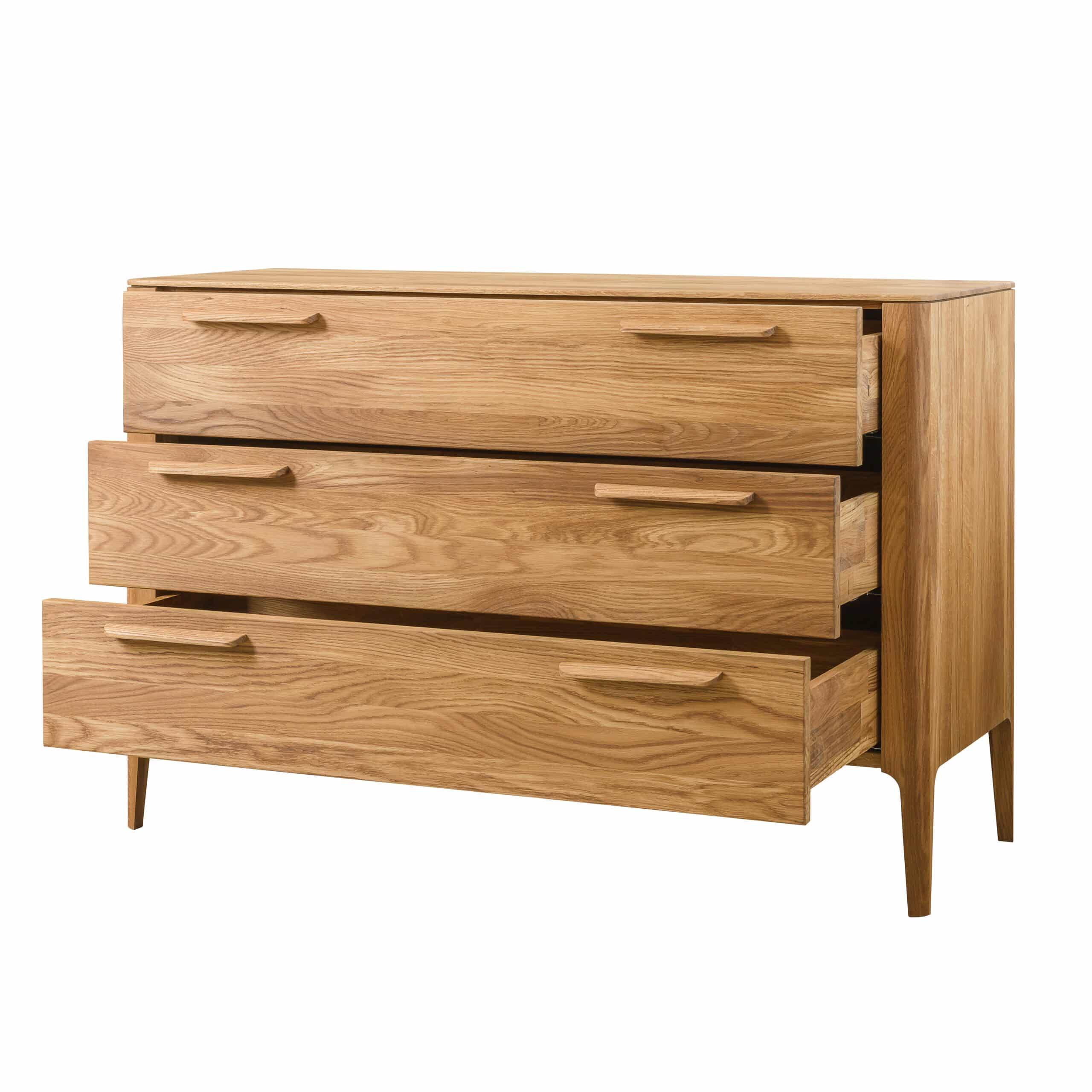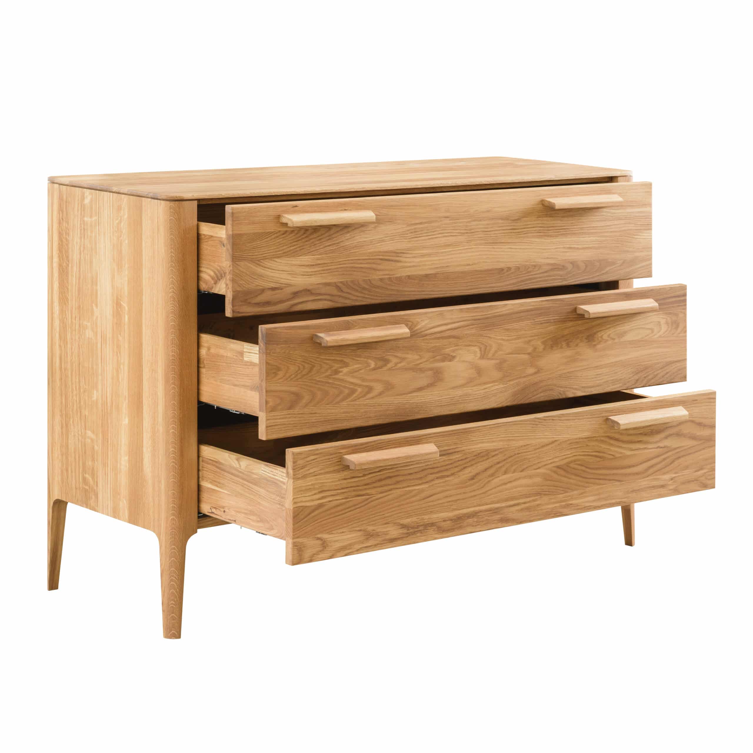 Vďaka svojmu univerzálnemu dizajnu sa komoda z dubového dreva Atlanta hodí do rôznych miestností vo vašej domácnosti. V obývacej izbe môže slúžiť ako štýlový úložný priestor na knihy, dokumenty alebo elektroniku. V spálni ponúka dostatok priestoru na vaše oblečenie, doplnky alebo osobné veci. Tri priestranné zásuvky zabezpečia, že budete mať všetko ľahko dostupné a prehľadne usporiadané.