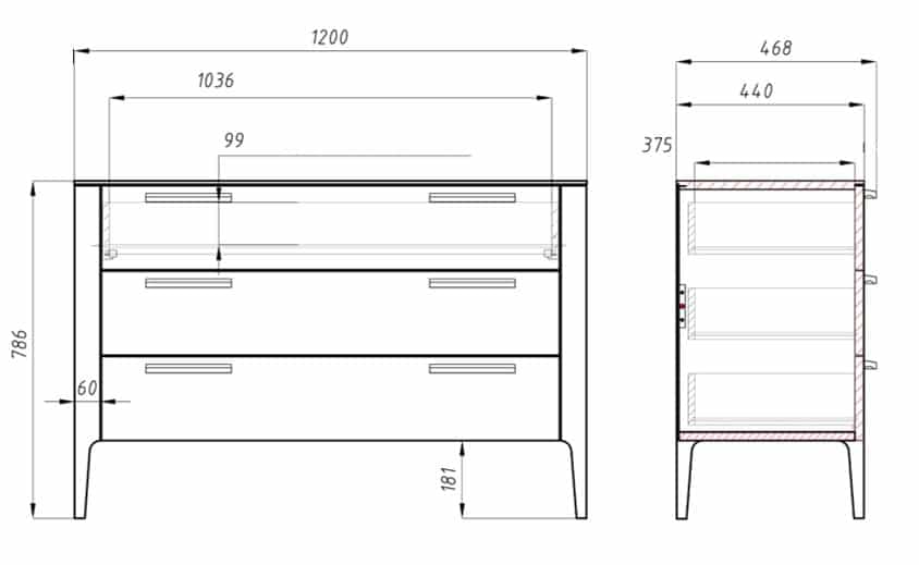 • Vnútorné rozmery zásuvky: 103 x 37 x 10 cm