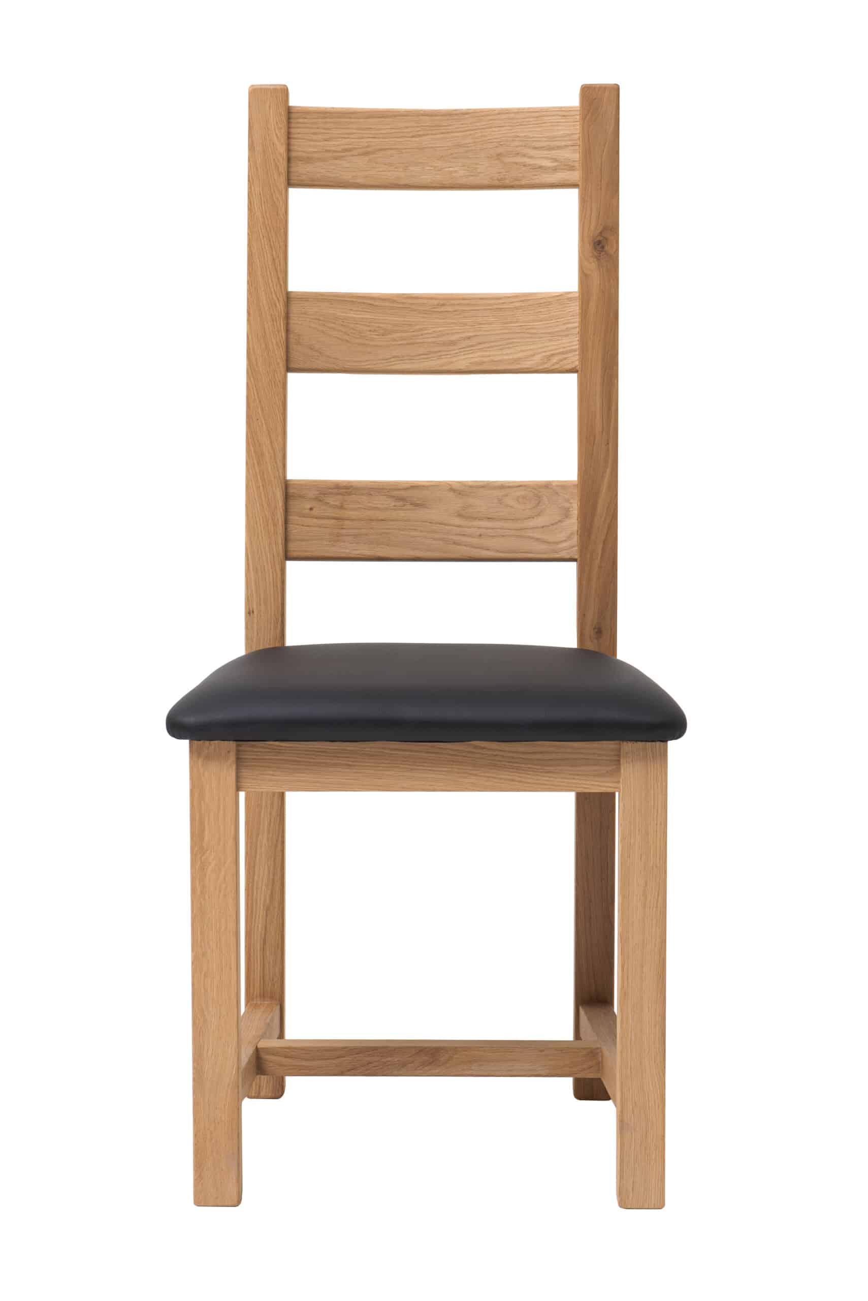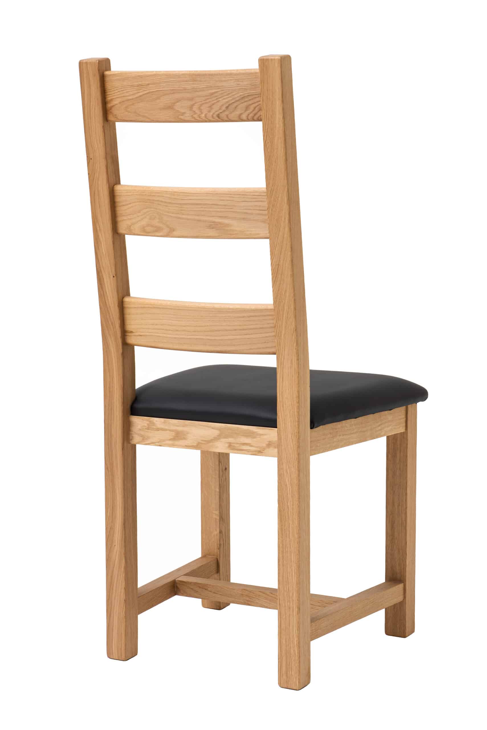 Dubová stolička, olejovaná a voskovaná, čalúnená, čierna koženka