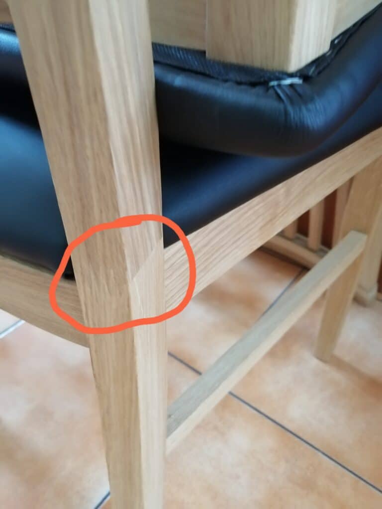 Stoličky vyzerajú pekne, ale ich spracovanie sa nám nezdá veľmi kvalitné. Po odstránení sedáku zo stoličky trčia triesky, ale nie je to vidieť. Stoličky sú len prilepené, nie sú ničím priskrutkované, takže sa trochu bojíme, že sa začnú kývať a hojdať. Jednu stoličku sme reklamovali, pretože bola vzadu prasknutá, ale v obchode s ňou nemali problém. Vymenili nám stoličky, zabezpečili dopravu. Týmto musím obchod pochváliť a pochváliť ich.