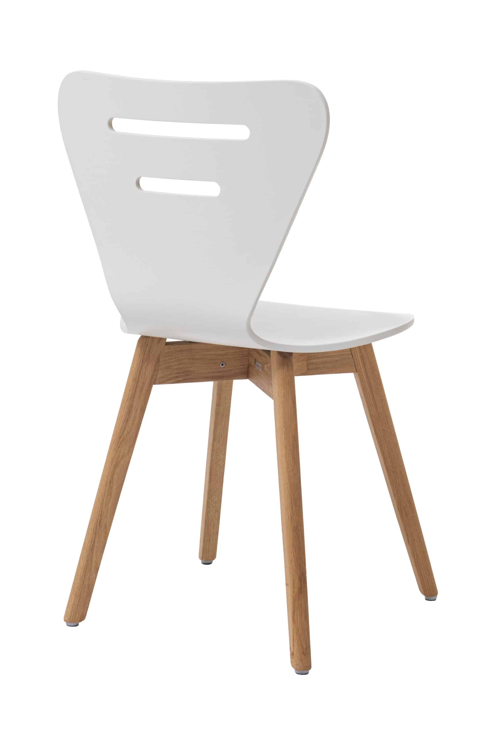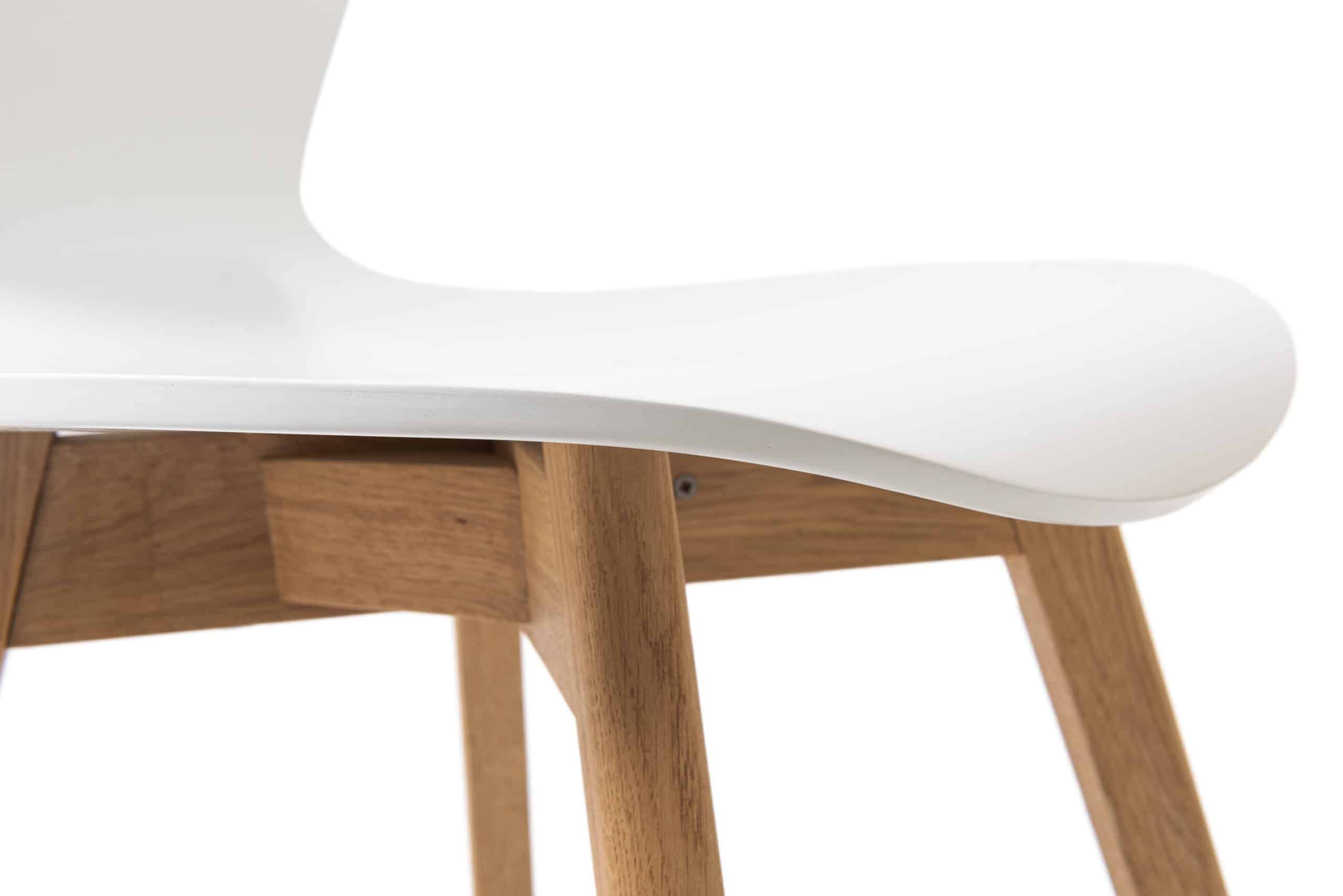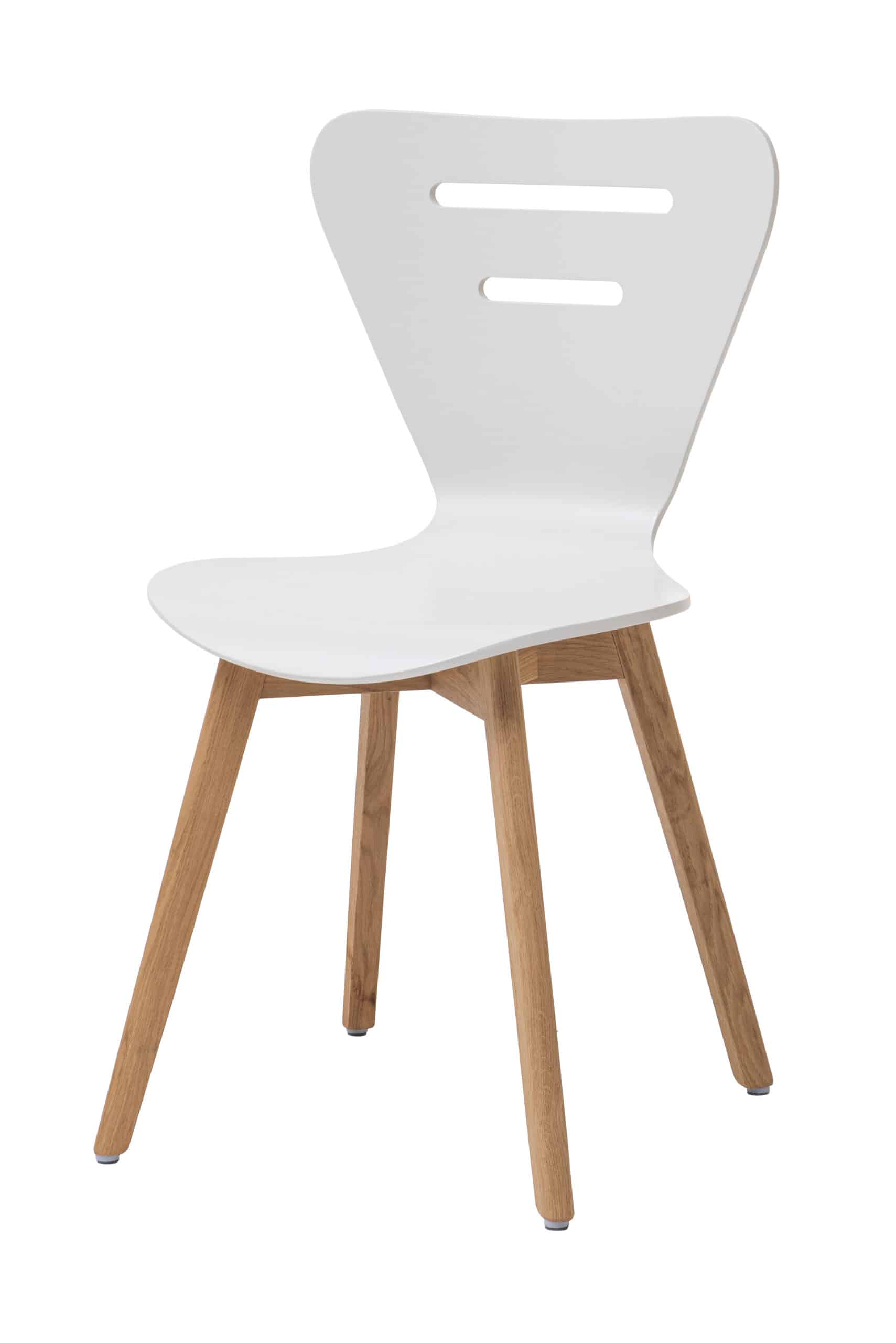 Biela stolička Doris s dubovým rámom, ktorý je vyrobený z masívneho dubového dreva v škandinávskom štýle, vytvára domácu atmosféru. Dub je jedným z najtvrdších materiálov tradične používaných v nábytkárskom priemysle. Sedadlo z bielej bukovej preglejky ponúka pohodlie a jednoduché čistenie.