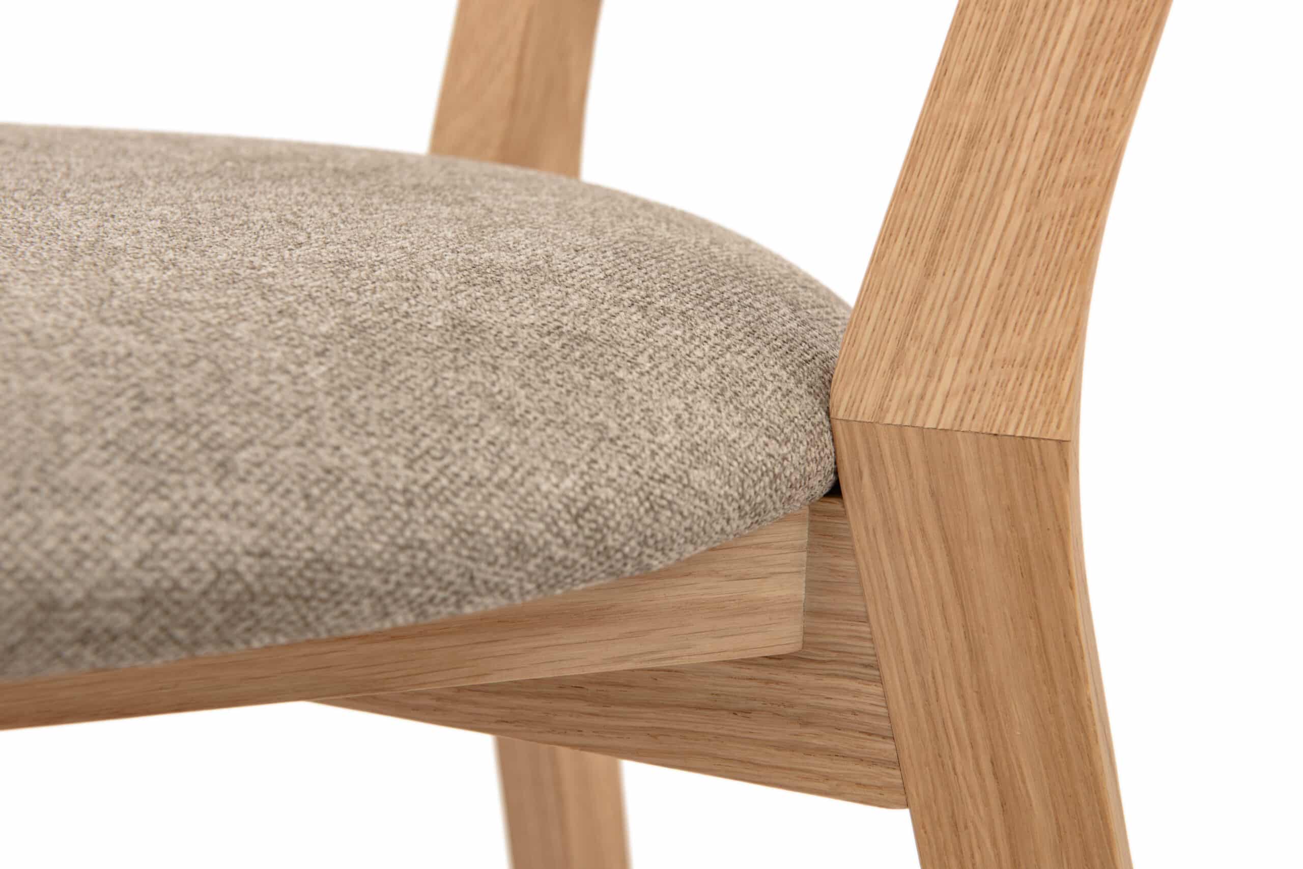Konštrukcia stoličky je vyrobená z poctivo vybraného masívneho duba, ktorý je známy svojou vysokou pevnosťou a odolnosťou. Vďaka tomu je stolička stabilná a ideálna na každodenné používanie v domácnosti. Povrchová úprava olejom a voskom chráni drevo pred opotrebovaním a zároveň zvýrazňuje jeho prirodzenú štruktúru a teplý odtieň.