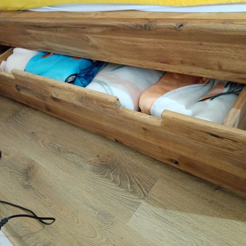 Zásuvky pod posteľ sú super.