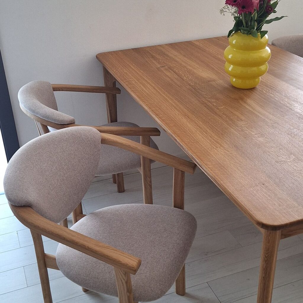 Táto dubová jedálenská stolička je ošetrená olejom a voskom, ktoré zvýrazňujú prirodzenú krásu dreva a zároveň ho chránia pred poškodením a opotrebovaním. Vďaka tomu zostane vaša dubová stolička hladká a pôsobivá po mnoho rokov.