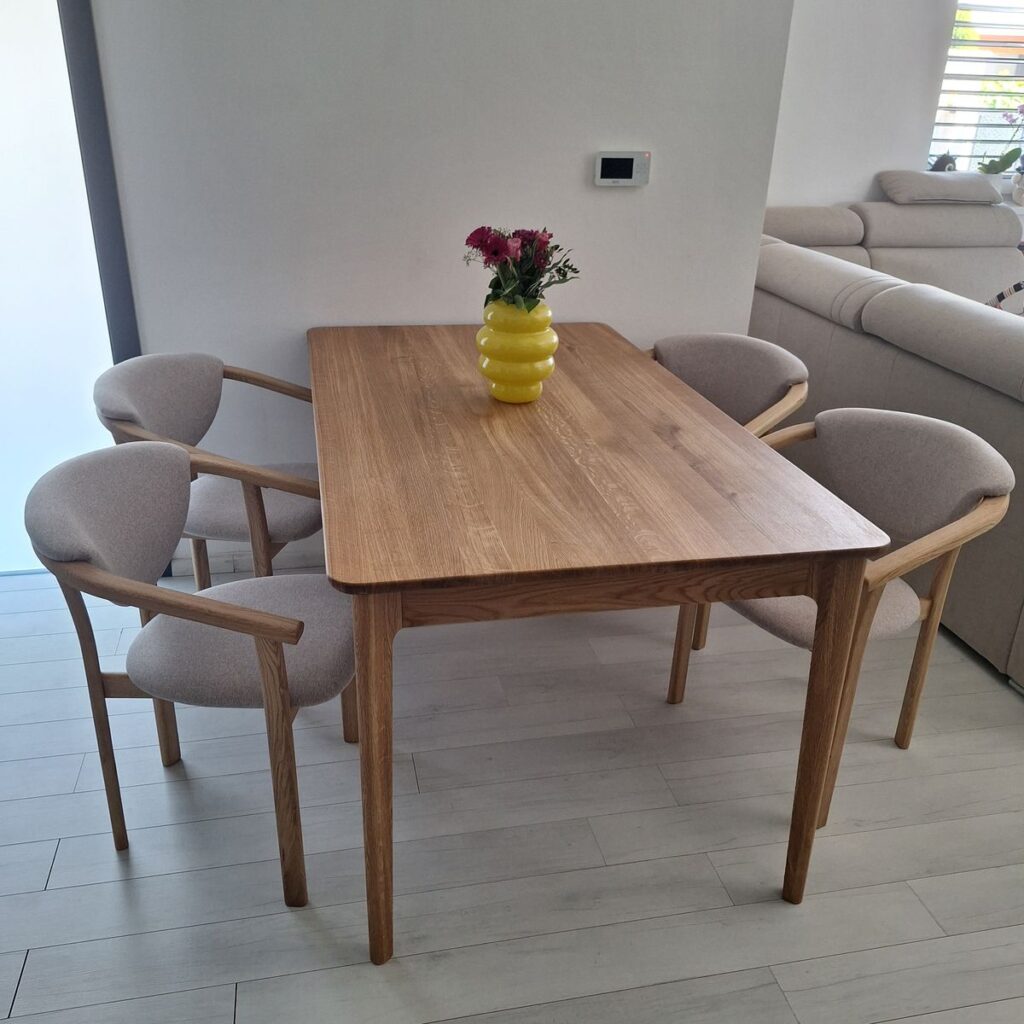 - Prémiová kvalita: jedálenská stolička je vyrobená z vybraného masívneho dubového dreva, ktoré zaručuje vynikajúcu pevnosť a odolnosť.