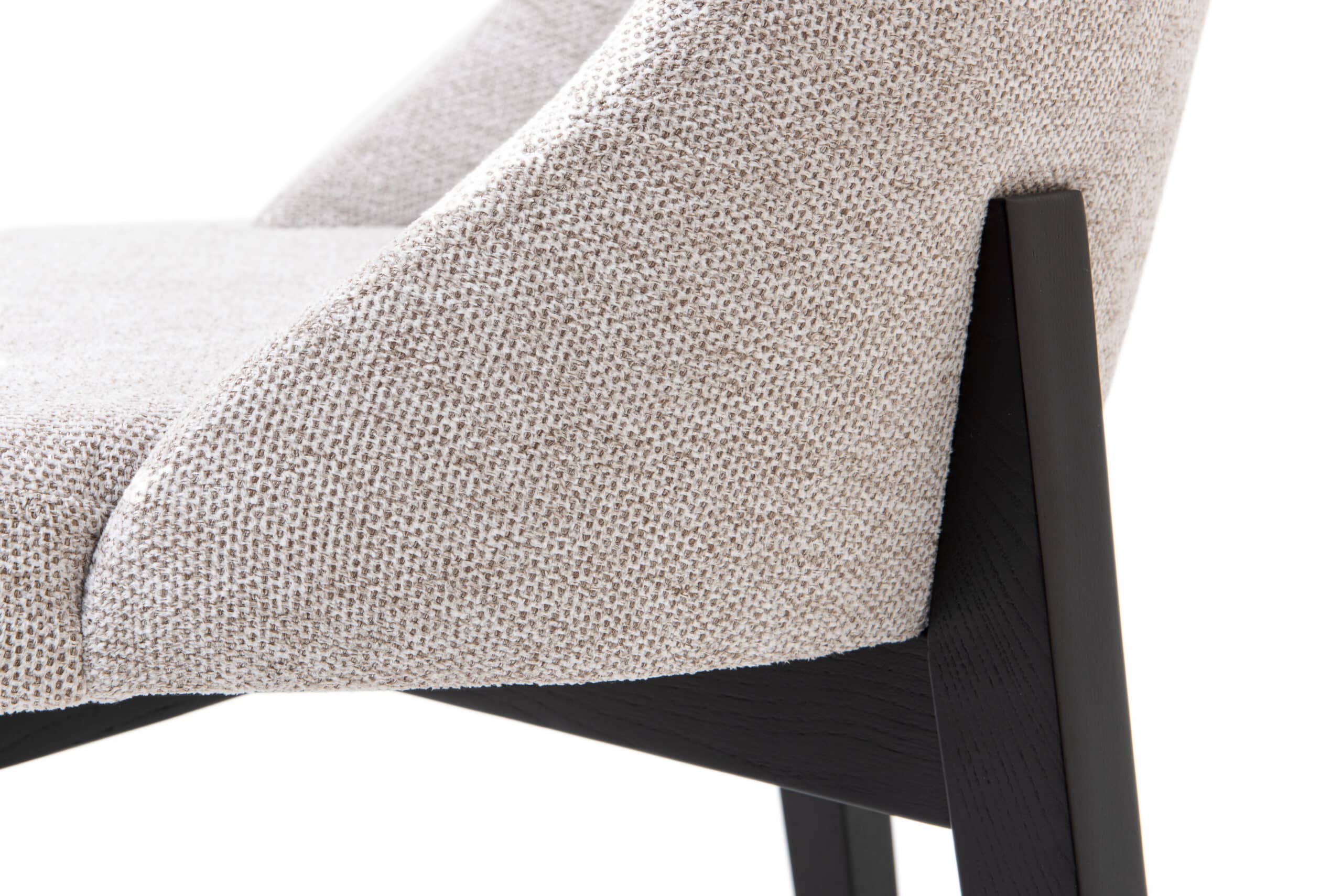 Konštrukcia stoličky stojí na pevných nohách z jaseňového dreva, ktoré sú lakované do elegantnej čiernej farby. Tento kontrast zvýrazňuje celkový dizajn a zároveň poskytuje stabilitu a dlhú životnosť. Jaseňové drevo je známe svojou pevnosťou a odolnosťou, čo z neho robí ideálny materiál na každodenné používanie.