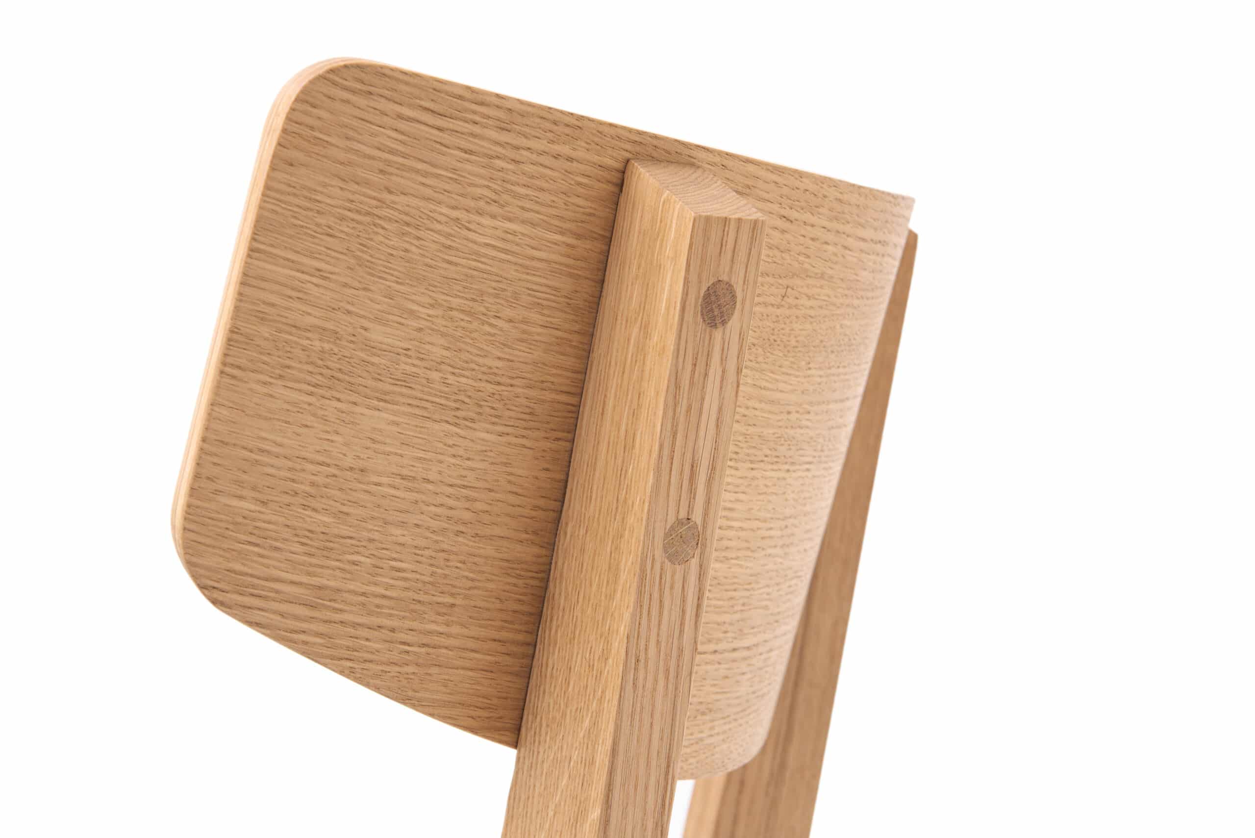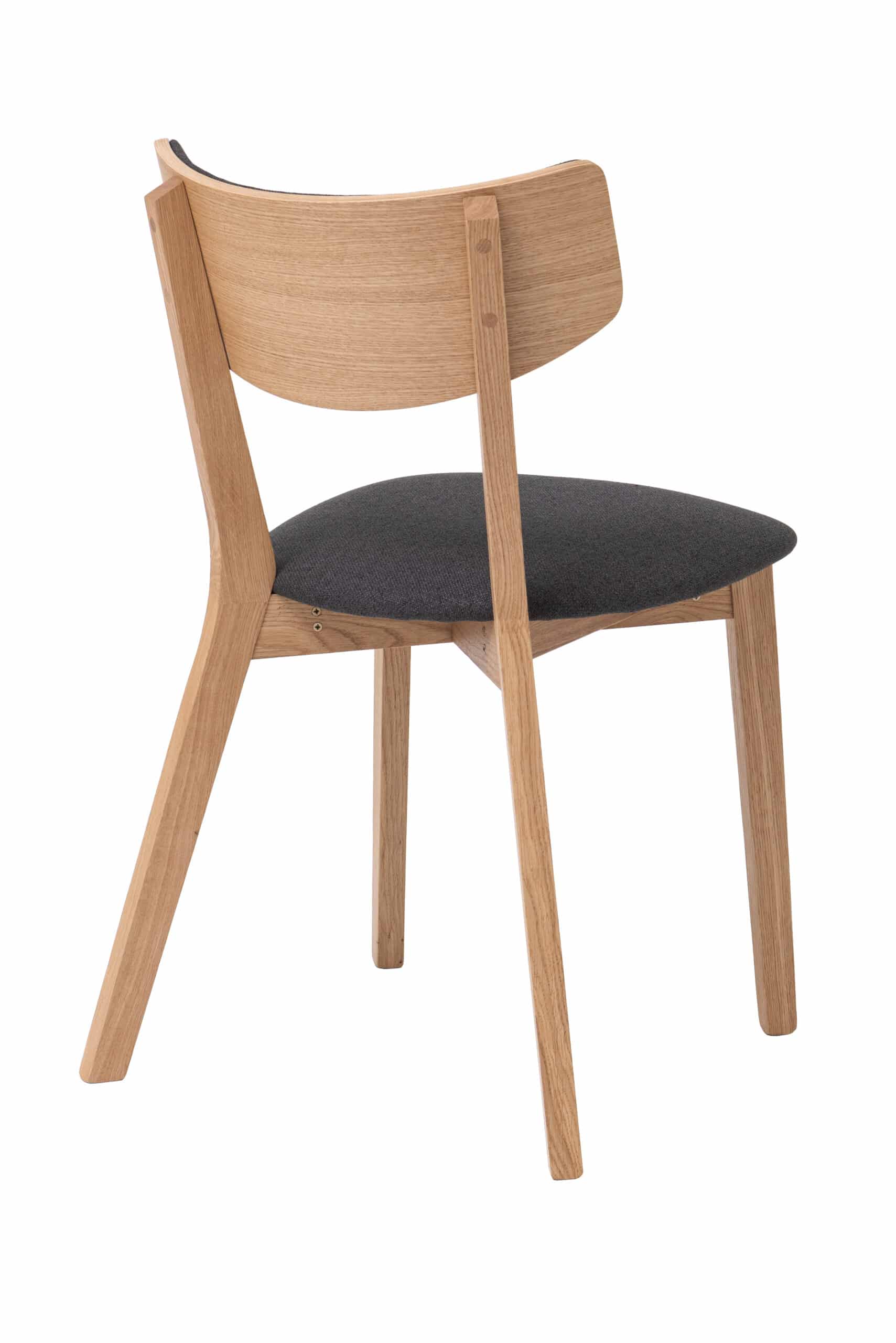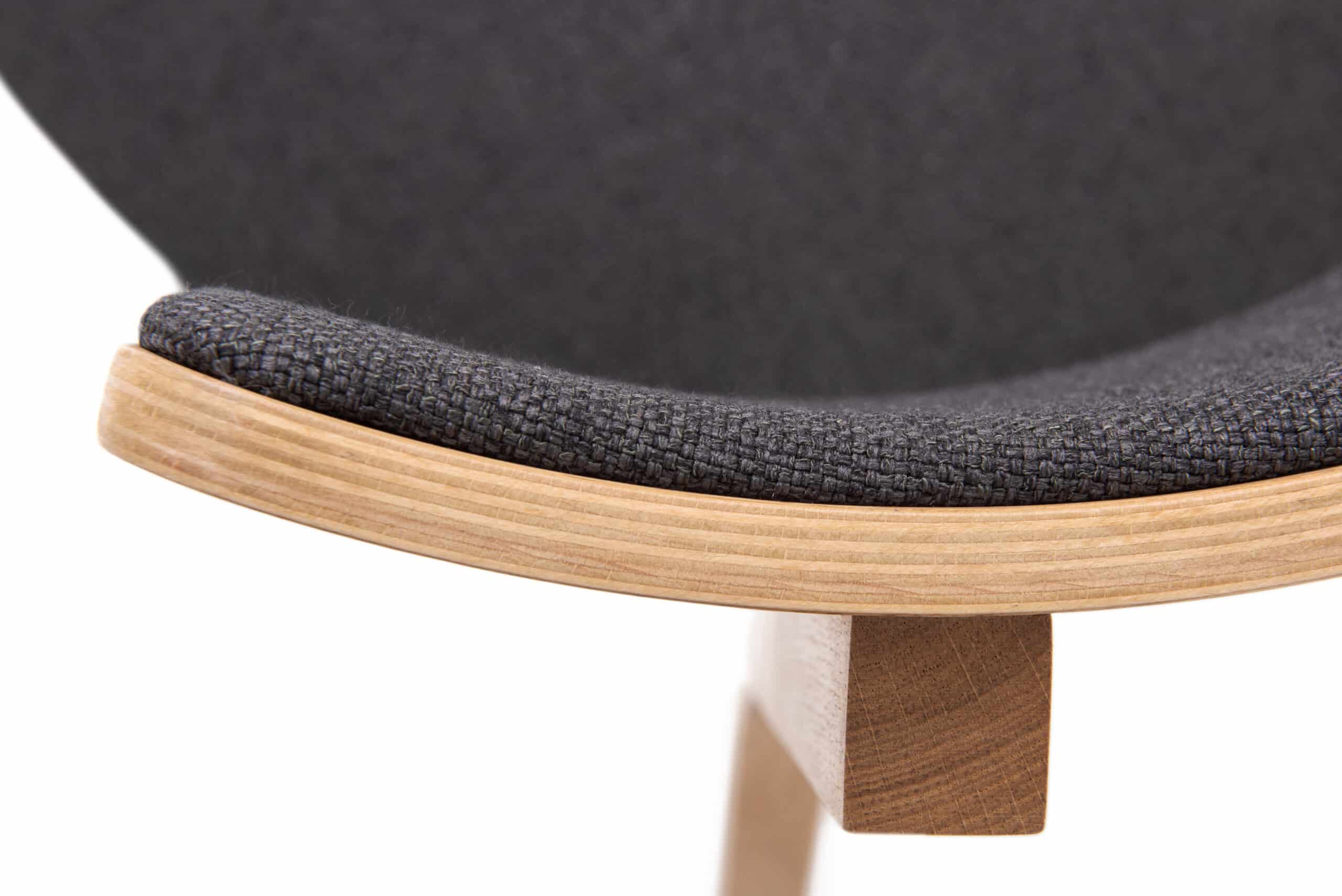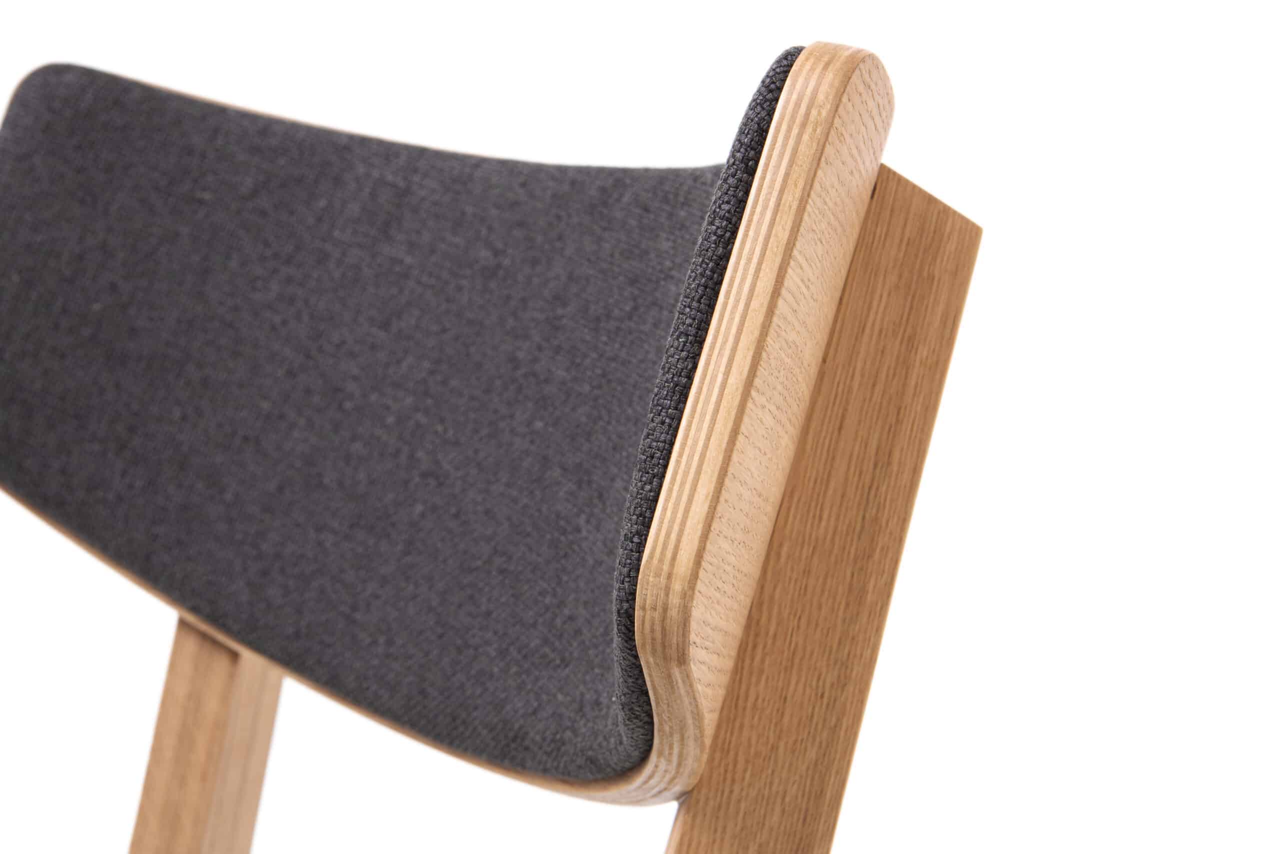 Konštrukcia stoličky je vyrobená z masívneho dubového dreva, ktoré je ošetrené kvalitným olejom. Olej zvýrazňuje prirodzenú kresbu dreva, ale zároveň ho chráni a predlžuje jeho životnosť. Sedák aj operadlo sú potiahnuté príjemnou čiernou látkou, ktorá zaisťuje komfort pri sedení.
