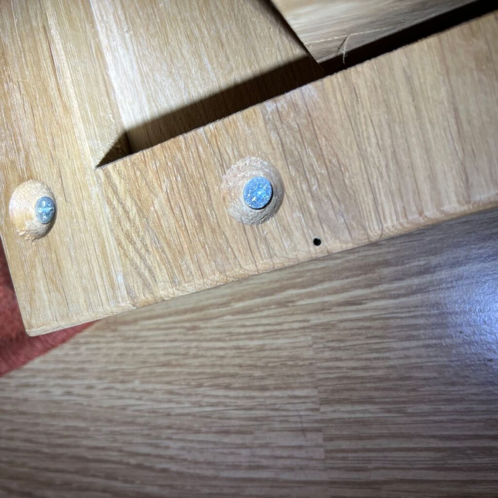 Uchytenie noh nie je podla mna uplne technicke spravne, kedze vznika medzera na protilahlej strane. Tiez som dostal stol s 2 dierkami po cervotococh. Nastastie je to zo spodnej strany ale neni to prijemne. Takze niesom spokojny. Stol ako taky ale vyzera dobre.