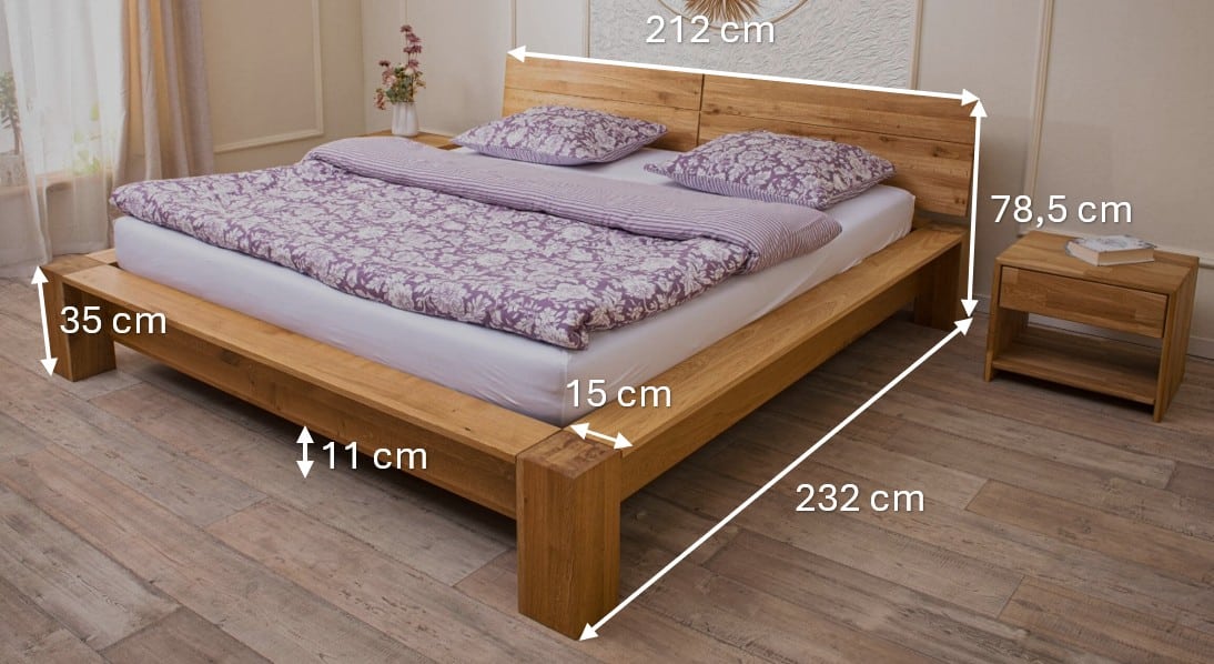 Posteľ Lucia je vyrobená z kvalitného masívneho duba, ktorý je známy svojou výnimočnou pevnosťou, odolnosťou a krásnou prírodnou kresbou. Povrchová úprava olejom Borma Wachs drevo chráni pred opotrebovaním, zvýrazňuje jeho štruktúru a ponecháva mu prirodzený, teplý charakter.