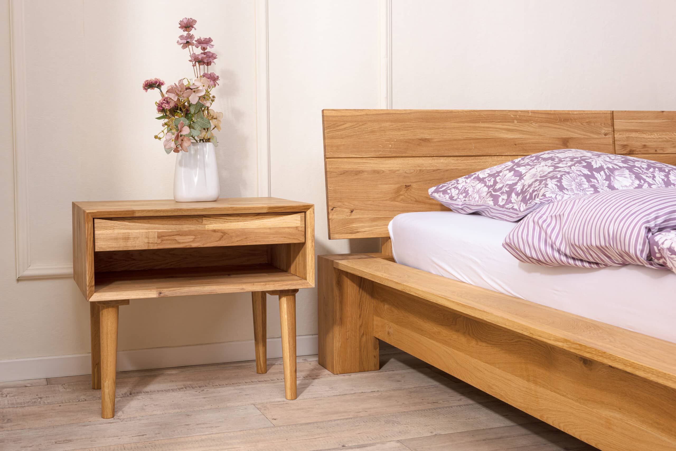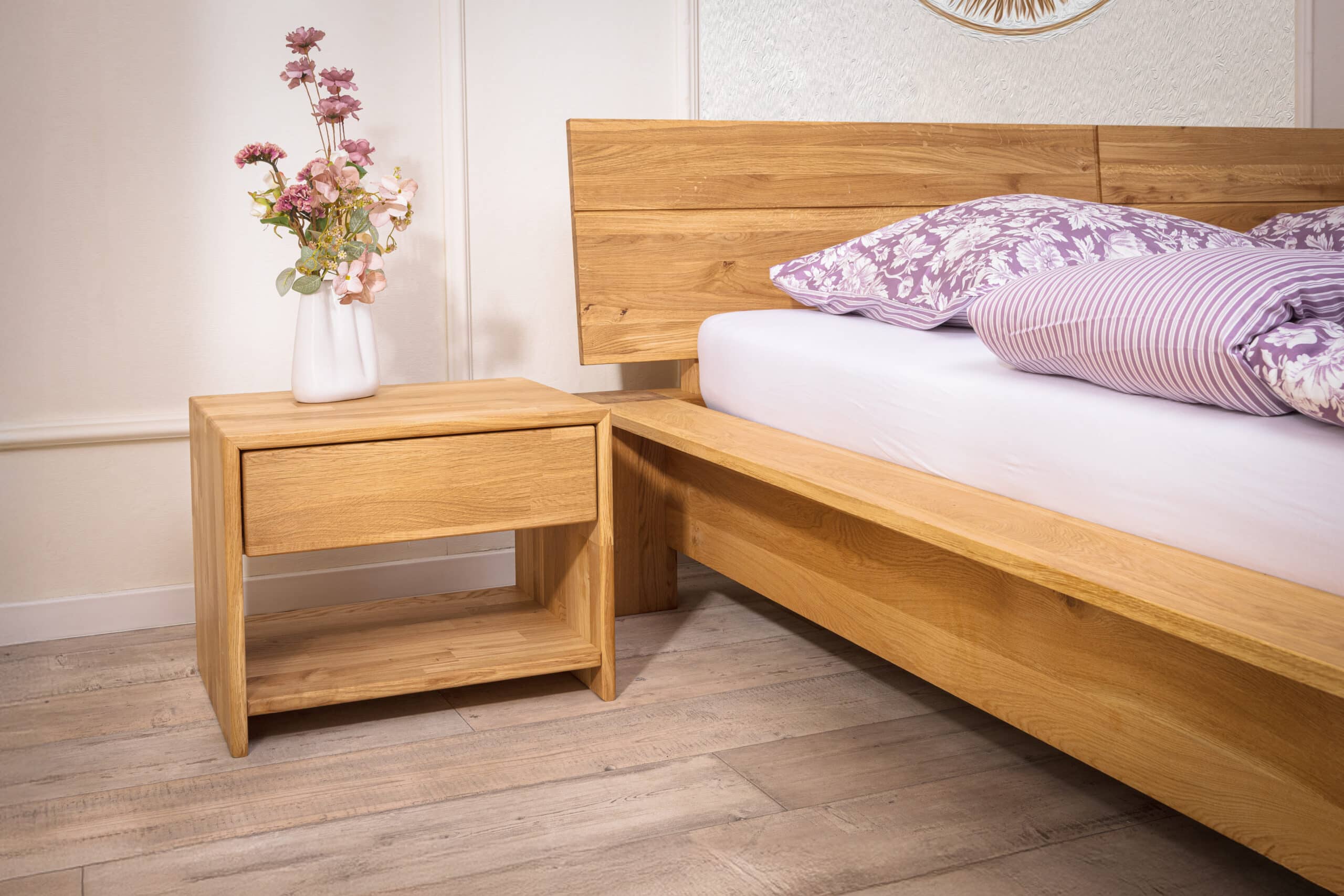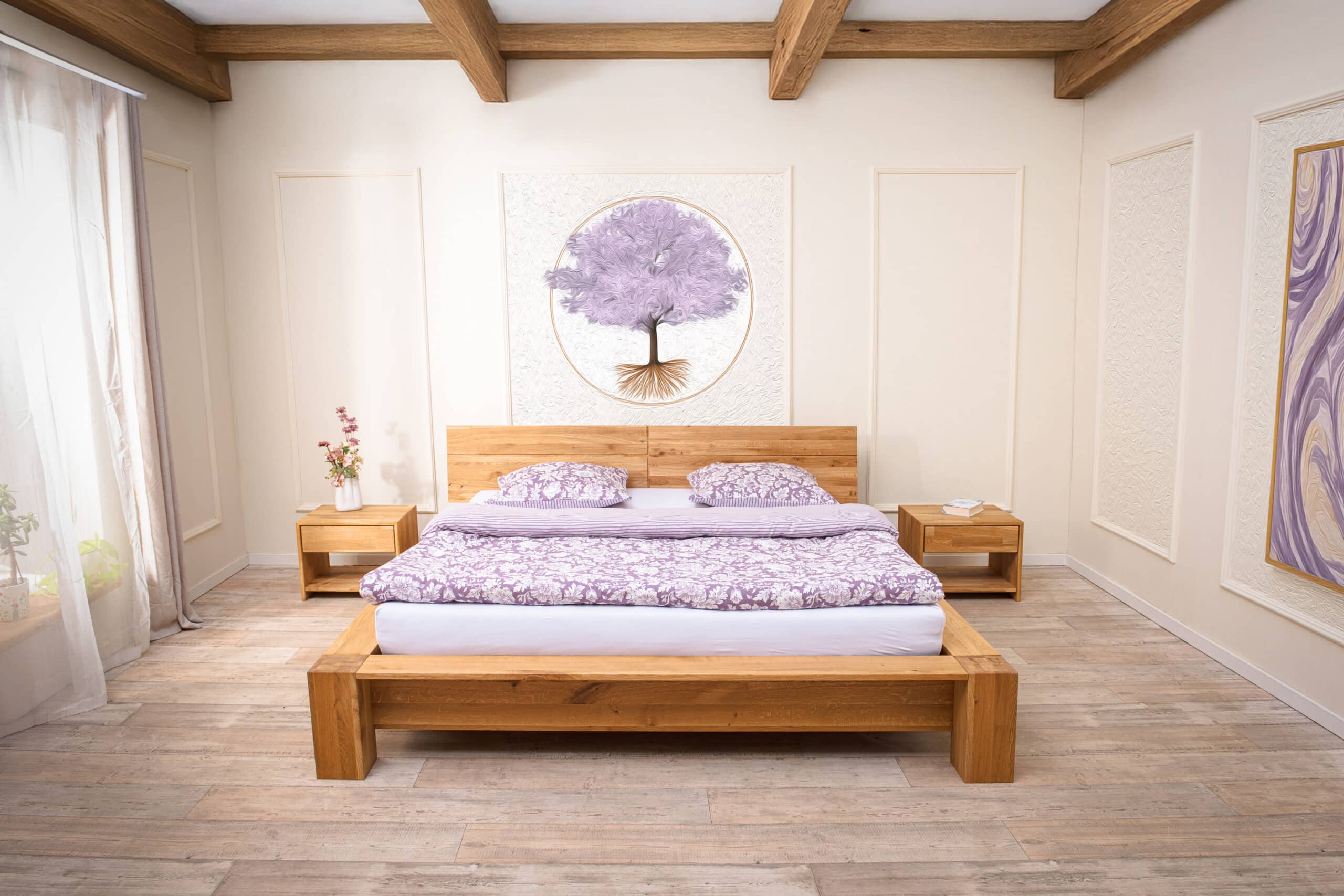 Posteľ Lucia z masívneho duba v sebe spája pevnú konštrukciu, čistý dizajn a precízne spracovanie čela. Vďaka nadčasovému vzhľadu a kvalitným materiálom predstavuje spoľahlivú investíciu do pohodlného spánku na mnoho rokov.