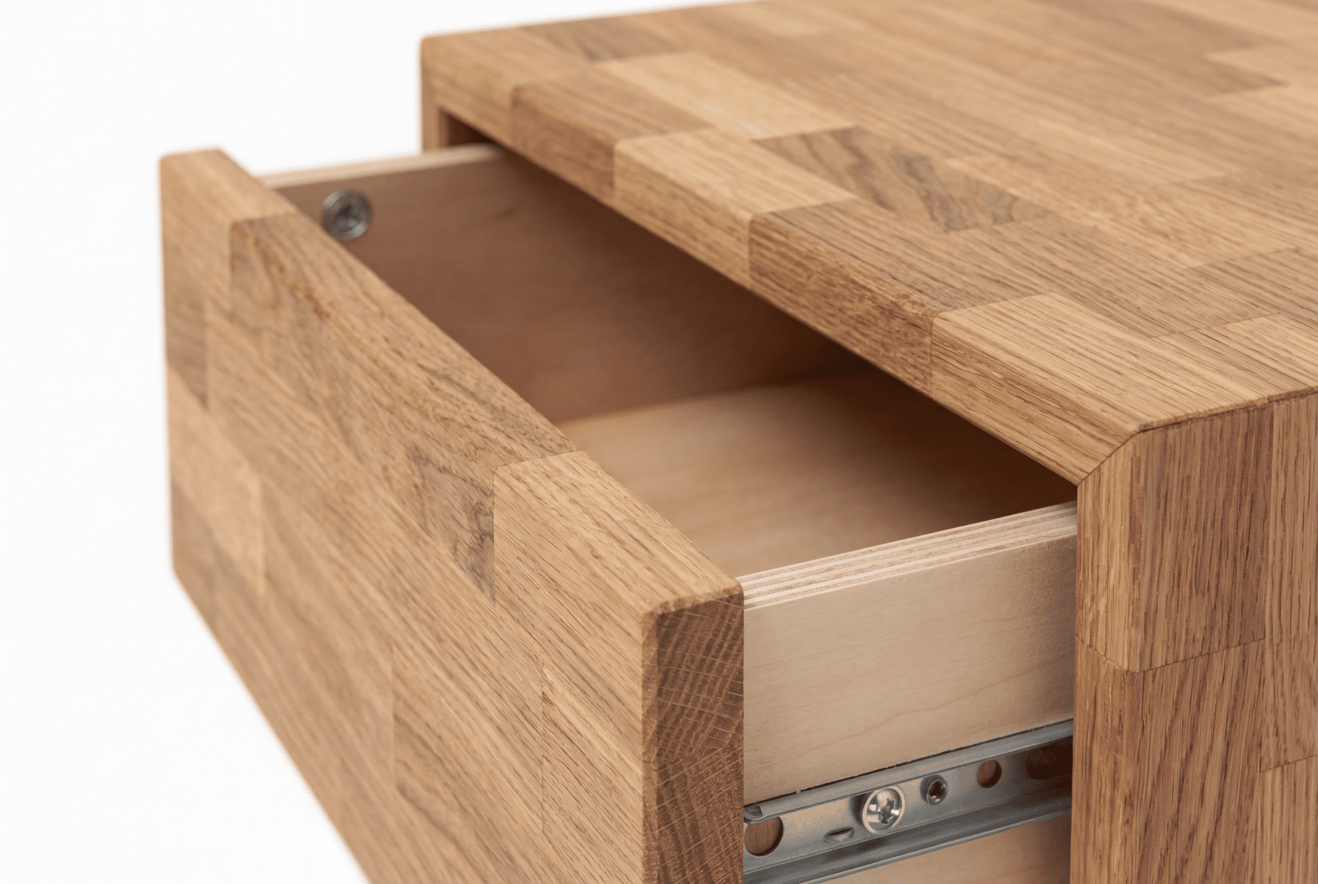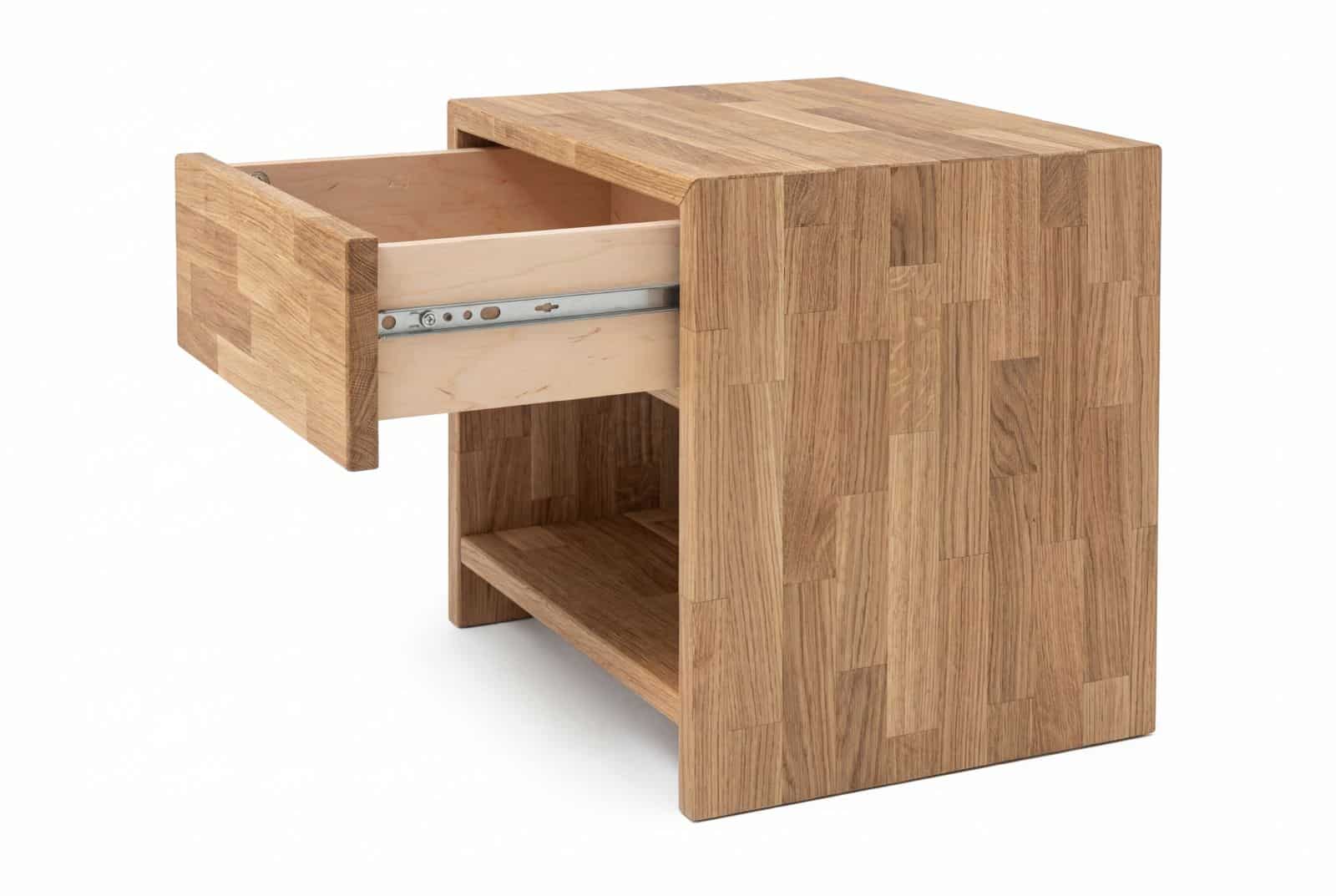 Nočný stolík Sofi Kubus nie je len dizajnovým doplnkom, ale aj praktickým pomocníkom. Zásuvka poskytuje diskrétny úložný priestor pre drobnosti, ktoré chcete mať upratané, zatiaľ čo otvorená polička ponúka dostatok miesta pre všetko, čo chcete mať poruke.